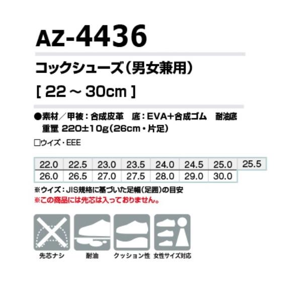 コックシューズ AZ-4436 22〜30cm 男女兼用 飲食店 ユニフォーム 厨房シューズ 調理靴 耐滑 耐油底 抗菌インソール AZ4436 アイトス AITOZ