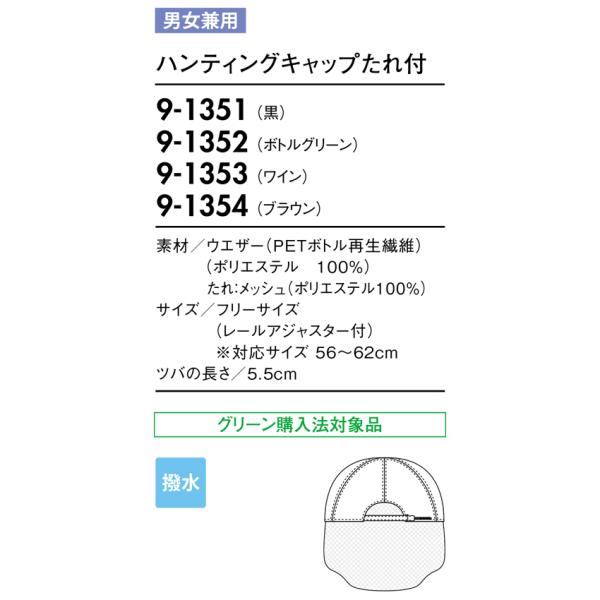 ハンティングキャップたれ付 男女兼用 飲食店 ユニフォーム 厨房 ホール 住商モンブラン MONTBLANC 9-1351