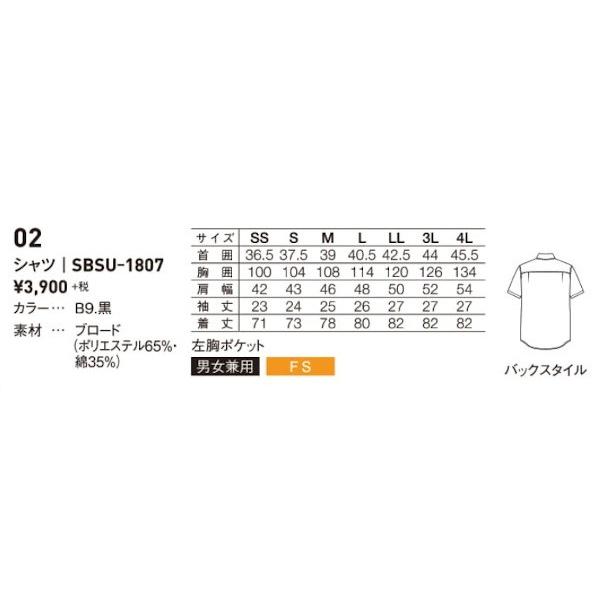 半袖シャツ SBSU-1807 男女兼用 飲食店 ユニフォーム サーヴォ