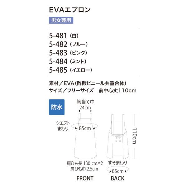 EVAエプロン 男女兼用 食品工場 飲食店 ユニフォーム 住商モンブラン 食品衛生管理システム MONTBLANC FOOD FACTORY 5-481 482 483 484 485