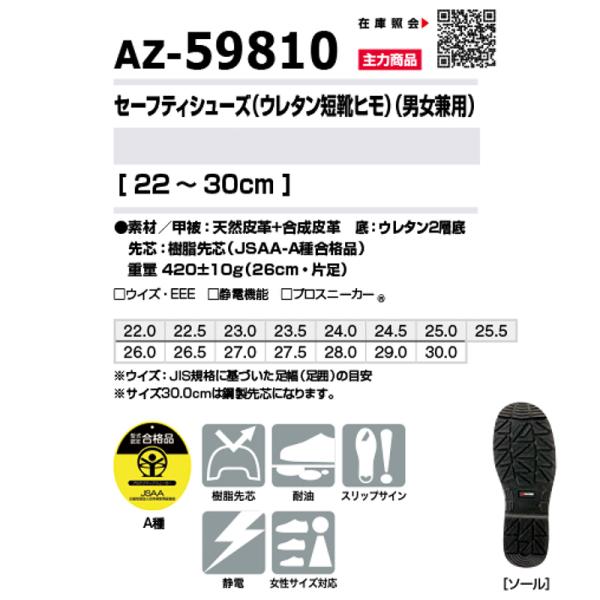 セーフティシューズ 安全靴 AZ-59810 22〜30cm ウレタン短靴ヒモ 男女兼用 AITOZ アイトス