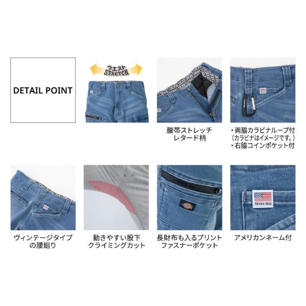 ディッキーズ Dickies ストレッチシルキーデニムカーゴ D-2905 全3色 男女兼用 SS-6L カーゴパンツ 作業服 作業着 コーコス信岡 CO-COS
