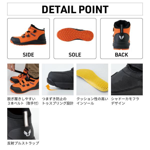 プロスニーカー MW-3300は、作業環境での安全性と快適性を追求したセーフティシューズです。合成皮革と合成繊維を使用したアッパーは耐久性に優れ、EVAとラバーのソールが優れたクッション性を提供します。さらに、樹脂製の先芯が足をしっかりと保護し、反射素材が夜間の視認性を向上させます。つまずき防止設計により、運送業や屋内作業、一般作業に最適です。片足約350gの軽量設計で、長時間の作業でも疲れにくい仕様です。