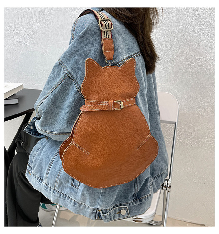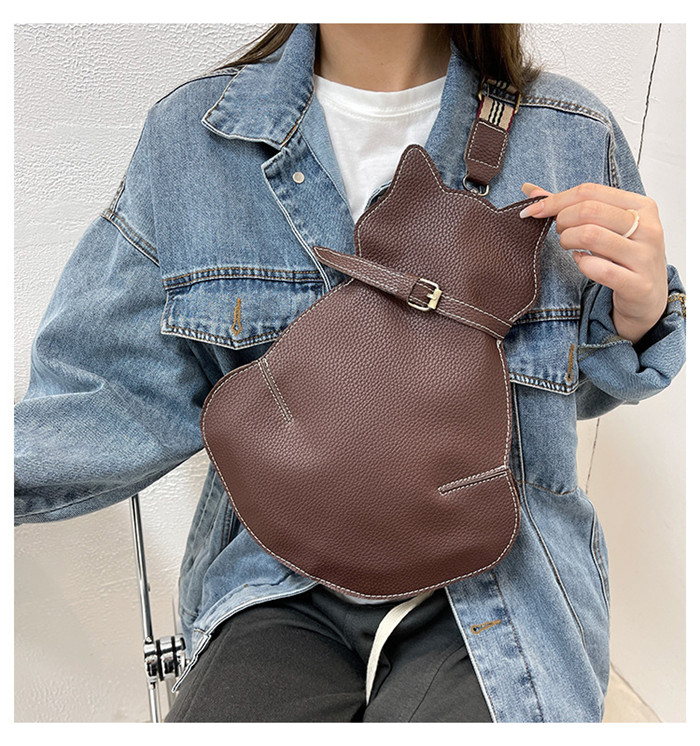 猫型ボディーバッグ 大きめサイズ ショルダーバッグ 猫型 ボディーバッグ 革バッグ レザー かわいい ショルダー 小物入れ 携帯便利 可愛い