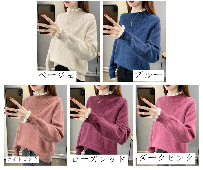 ニットセーター レディース レースニット トップス 上品 長袖 着回し チュニック ニットセーター 秋冬 韓国ファッション