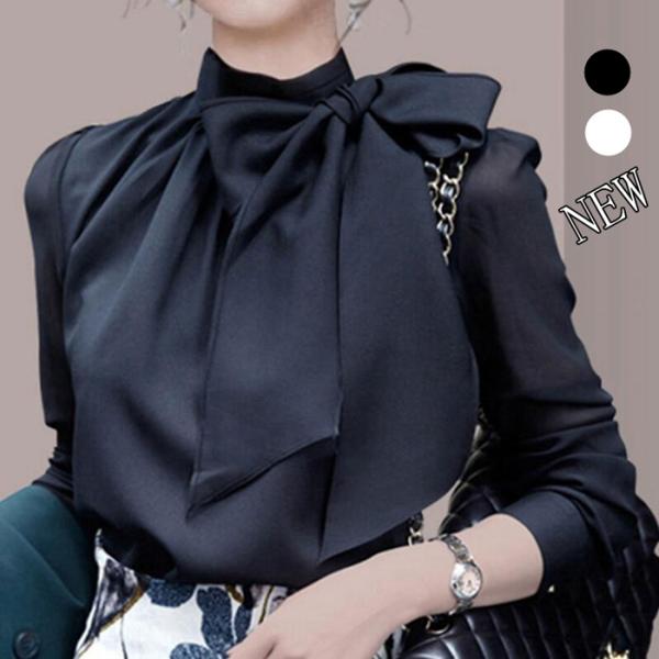 レディース ブラウス 長袖 オフィス フォーマル 卒業式 入園式 リボンブラウス 長袖 シフォンシャツ 肌触り 柔らか 女性 ブラウス 面接 七五三