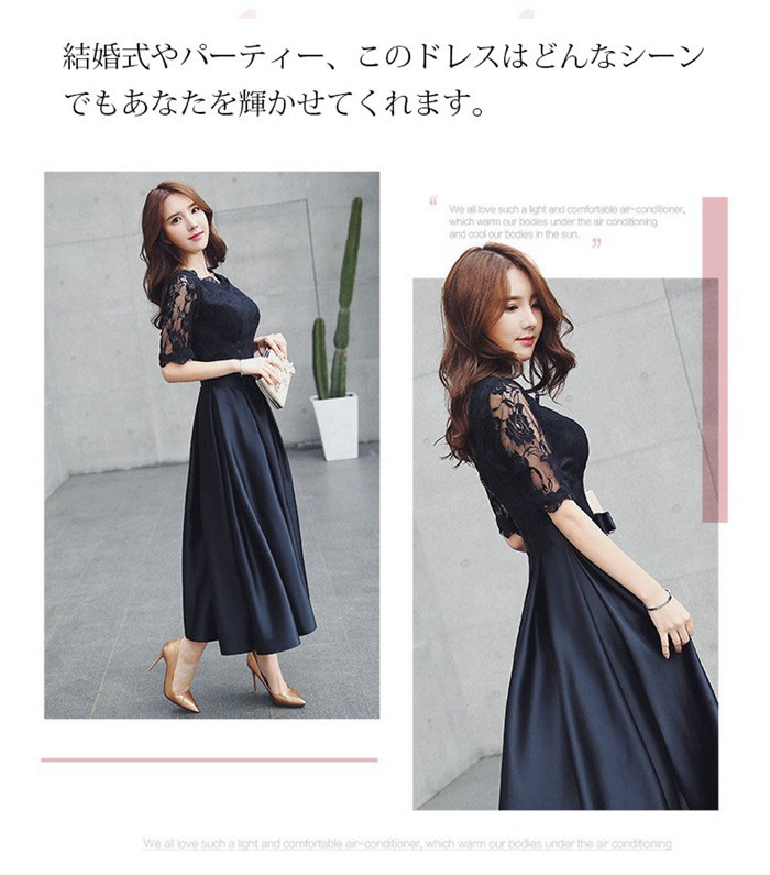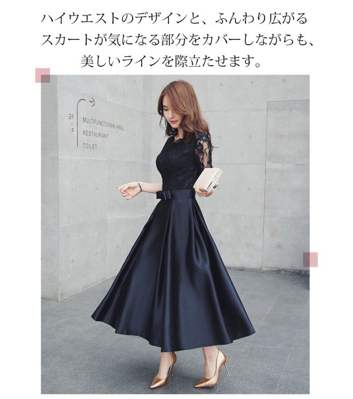 パーティードレス お呼ばれ サテン エレガント ドレス 結婚式 成人式 謝恩会 お呼ばれ 高見え ミモレ丈