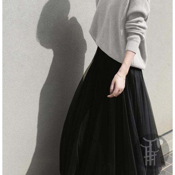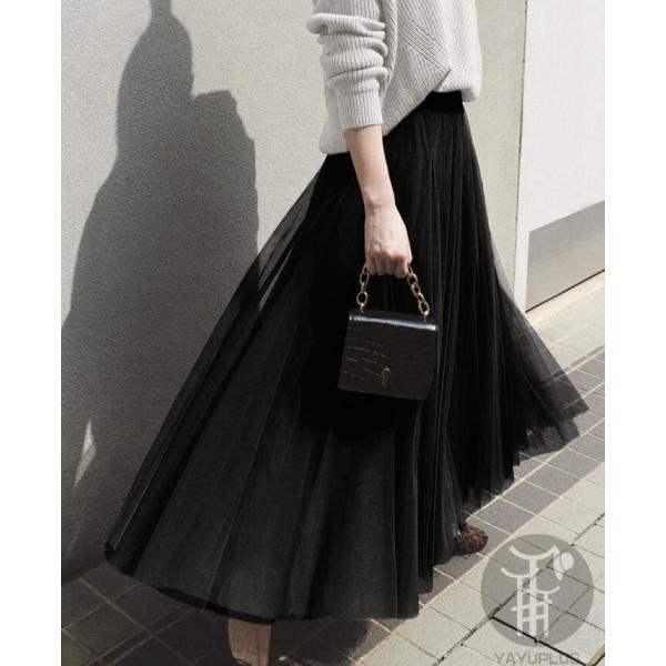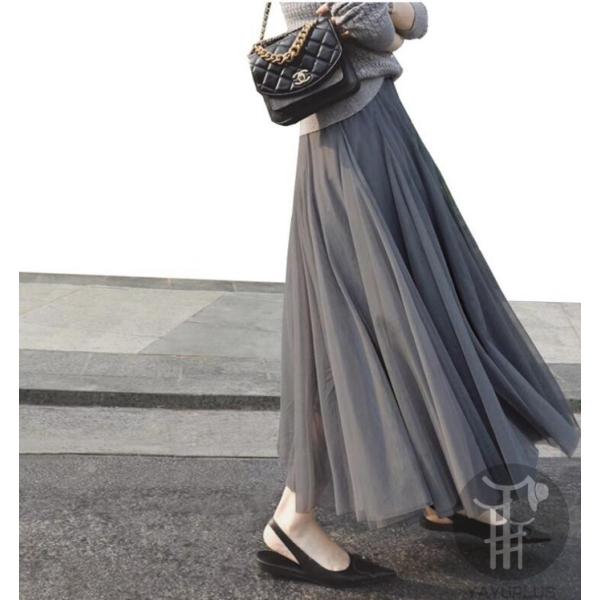 チュールスカート スカート マキシ ロングスカート フレアスカート ウエストゴム マキシスカート ミモレ丈