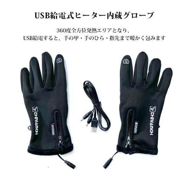 電熱手袋 ヒーター付き 3段階温度調節 スマホ対応