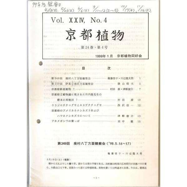 京都植物 京都植物同好会 [編] 京都植物同好会 1999年1月 書込み有