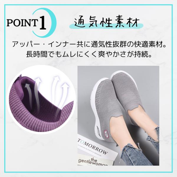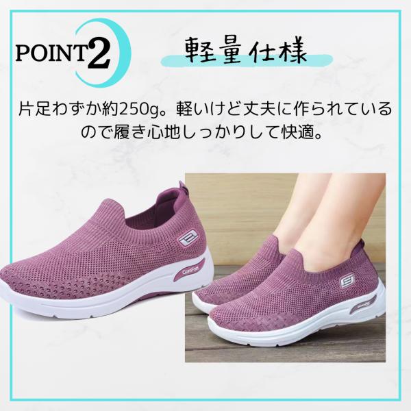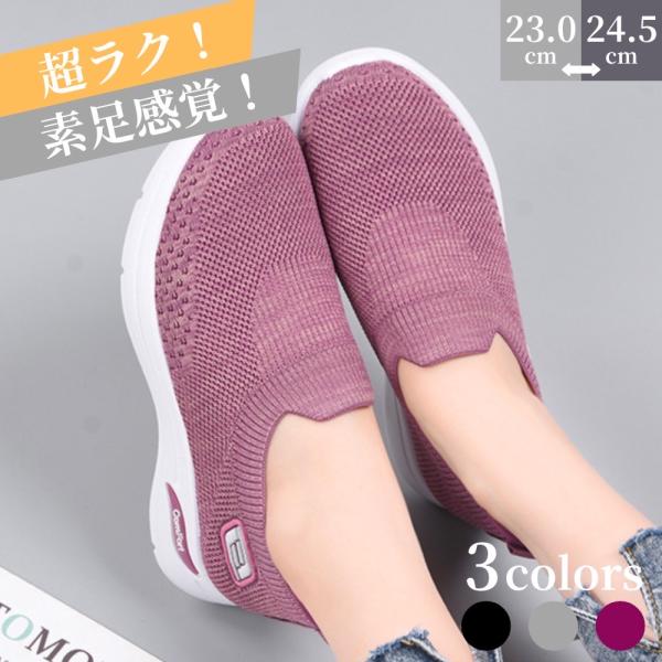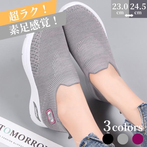 スニーカー レディース スリッポン ウォーキング 軽量 通気性 歩きやすい やわらかい 疲れにくい