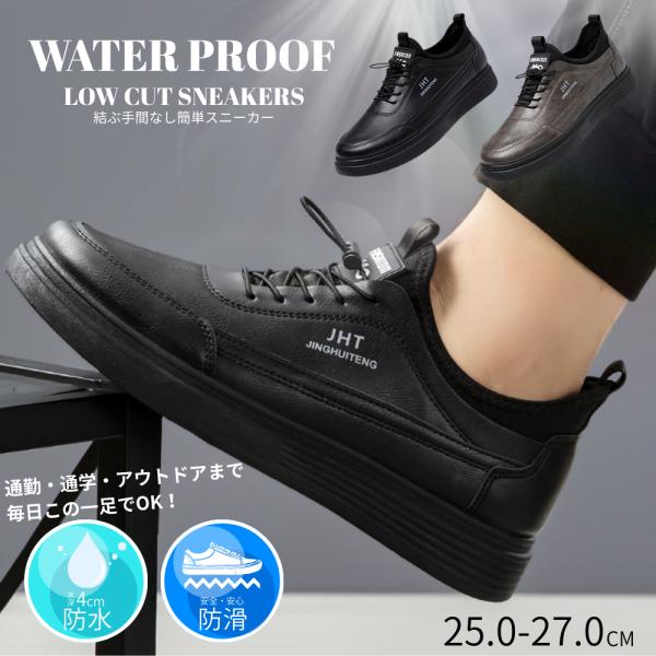レザースニーカー メンズ 革靴 合皮 結ばない クッション性 レザースニーカー 防水シューズ カジュアル おしゃれ 歩きやすい