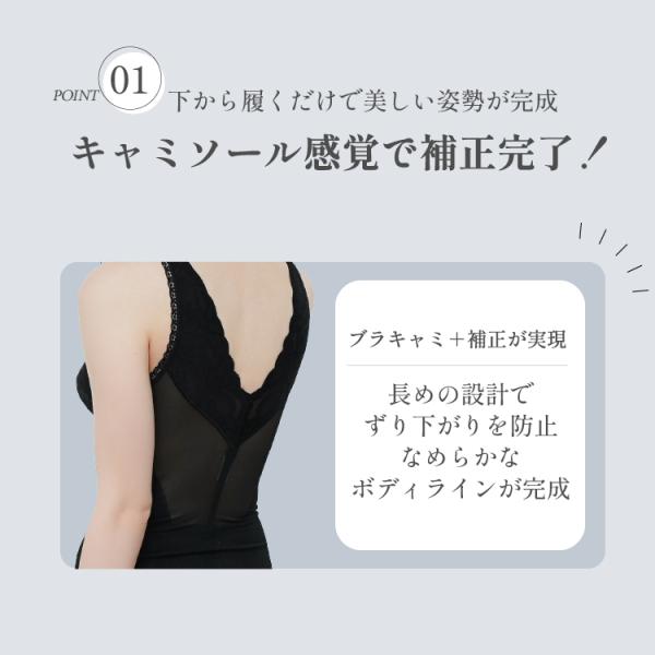 カップ付きインナー感覚で使えるのに、S字のウエストパネルでスタイルアップ効果は抜群。