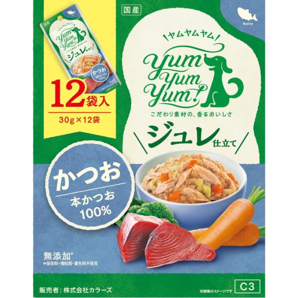 yumyumyum ジュレ仕立て かつお 犬用 30g×12袋 | 国産 無添加 ドッグフード 国産原材料 魚 食べやすい トッピング ごはん ウェットフード (賞味期限:27/03)