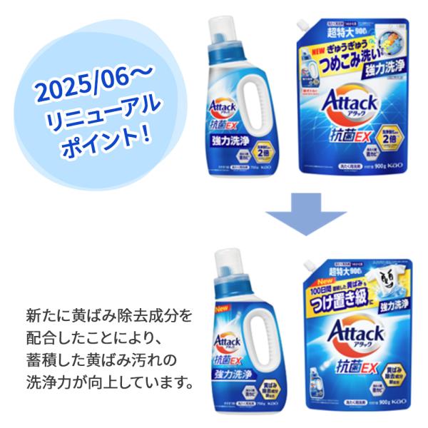 アタック抗菌EX or アタック抗菌EX (部屋干し) つめかえ用 2個セット※いずれか1種類 | 花王 洗濯用洗剤 汚れ ニオイ菌 防カビ 抗ウイルス 匂わない 900g 850g