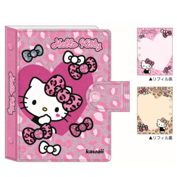 ハローキティ ヒョウ柄 ピンク シールバインダー シール帳 リフィル10枚入 6穴 キラキラストーン付ベルト 307364