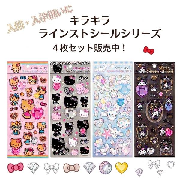 サンリオキャラクターズ キラキララインストーンシール 4柄セット ハローキティ 日焼け ゼブラ シナモロール クロミ 小学生 女の子 キャラクター シール 立体