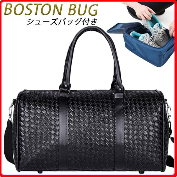 ボストンバッグ メンズ レディース 大容量 ビジネス スポーツ PU レザー 革 シューズバッグ付き
