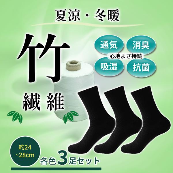 靴下 メンズ ソックス ビジネスソックス 3足セット 消臭 竹 繊維 24cm〜28cm