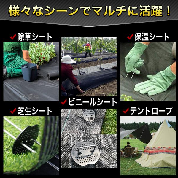 除草シート、人工芝、芝生シート、マルチングシート、レジャーシート、ビニールシート、雑草防止シート、保温シートなどを固定!