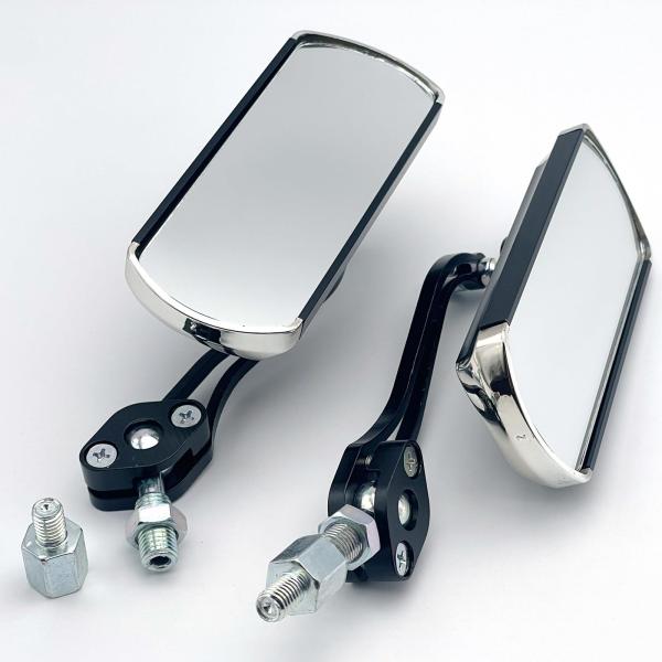 LEXOR クラシック アルミ スクエア ミラー 汎用 10mm 8mm アダプター2個付き 360度回転 調整 ダックス ジョルノ カブ PCX C