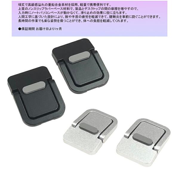 頑丈で高級感溢れの亜鉛合金素材を採用、軽量で携帯便利です。上質のノンスリップラバーベース材料で、製品とデスクトップの間の摩擦を増やすので、字入力の時にノートパソコンベースが動かなくて、滑り止めの効果に役に立ちます。