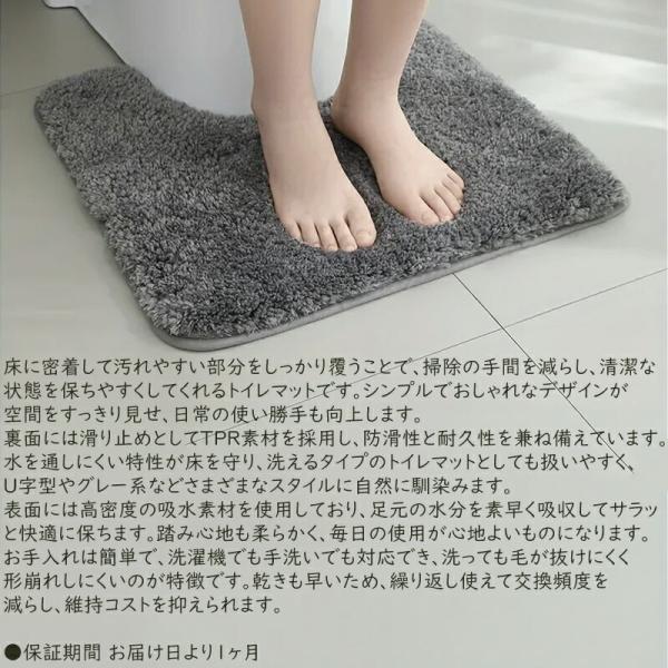 トイレマット u型 洗える 北欧 カーペットトイレ 無地 人気 吸水 ふかふか 浴室吸水マット 家庭用 約50×40cm ※カラーをお選びください