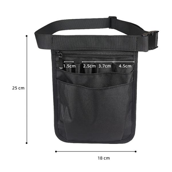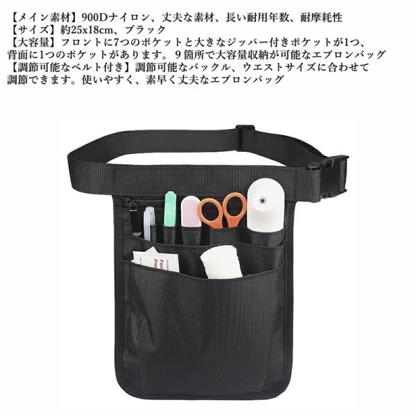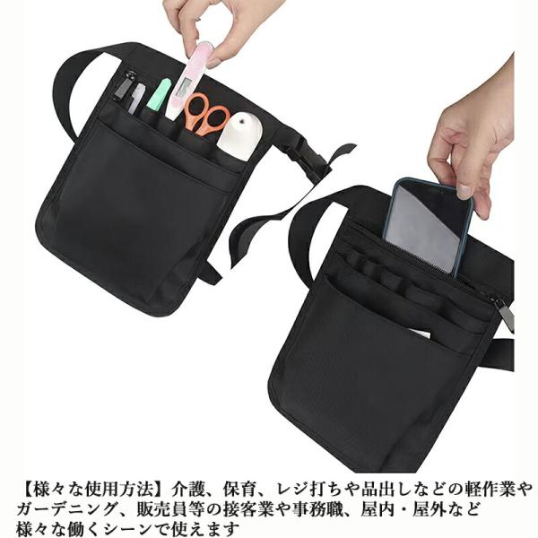 ウエストポーチ 工具袋 保育 仕事用 エプロンバッグ ウエストバッグ ベルト付 多機能ポケット 18cm×25cm 約125g ブラック