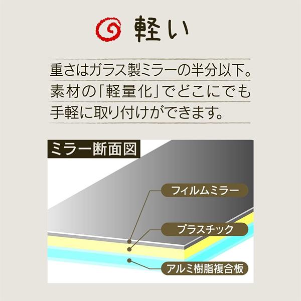 ミラー 鏡 割れない 軽い 軽量 シール テープ 貼り付け 簡単 壁面 安心 フィルム 浴室 お風呂場 玄関 靴箱 子ども部屋 オフィス 日本製