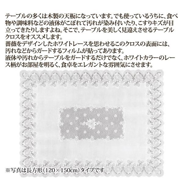 テーブルクロス 撥水 おしゃれ レース柄 花柄 薔薇 バラ 高級感 テーブルマット ランチョンマット 汚れ防止 ローズ 白 フィルム 日本製 小