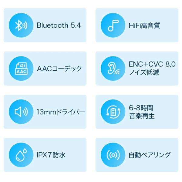 Bluetooth 5.4 ワイヤレスイヤホン bluetooth イヤホン HiFi高音質 IPX7防水 軽量 左右独立 自動ペアリング CVC8.0&AAC8.0対応