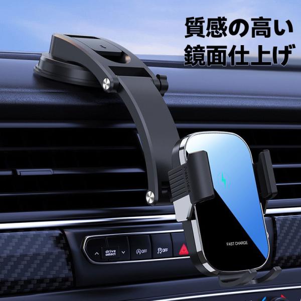 最新型の車載スマホワイヤレス充電ホルダー、最大15W出力の急速QI充電、iPhoneやAndroid等のワイヤレス充電対応機種なら置くだけで充電されます、ワイヤレス充電非搭載機種は付属のマグネット端子にて充電可能、鏡面仕上げ、おしゃれです。