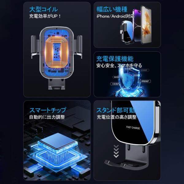 車用スマホホルダー、15Wワイヤレス急速充電!