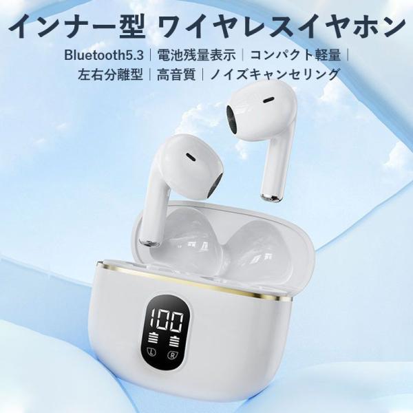 最新型のインナーイヤー型イヤホン、Bluetooth5.3搭載、高音質の通話/音楽再生、ノイズキャンセリング、電量表示などの機能を搭載した高性能、6カラーよりお選びいただける完全ワイヤレスイヤホン。
