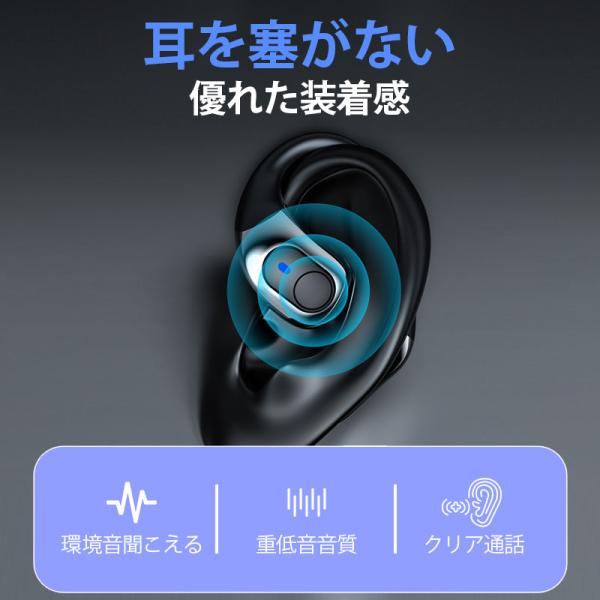 ワイヤレス イヤホン 耳掛け式 Bluetooth 5.4 耳を塞がない オープンイヤー型 片耳 両耳 マイク付き iPhone Andriod 耳挟み 空気転導 高音質 音漏れを防ぐ