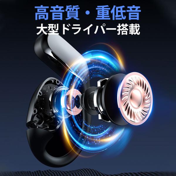 最新型の耳掛け式ワイヤレスイヤホン、Bluetooth5.4バージョン、耳を塞がないオープンイヤー設計、耳が痛くない、快適装着!指向性伝音技術やノイズキャンセリング等の最新技術を搭載、環境音を聞こえながら、音漏れせず、クリアな高音質をお届けします。