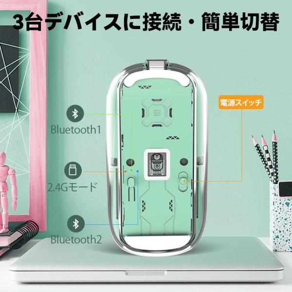 マウス Bluetooth ワイヤレス 透明 3台 接続 マルチペアリング 無線 電量表示 充電式 静音 超薄型 2.4GHz ブルートゥース 軽量 3in1 トリプル