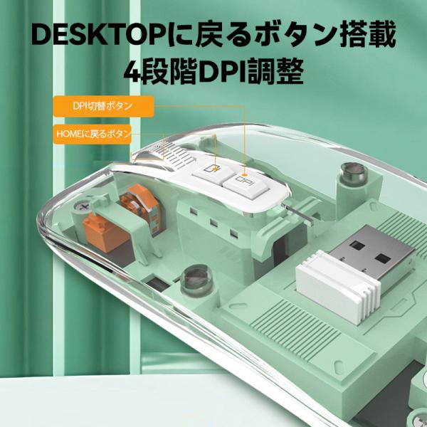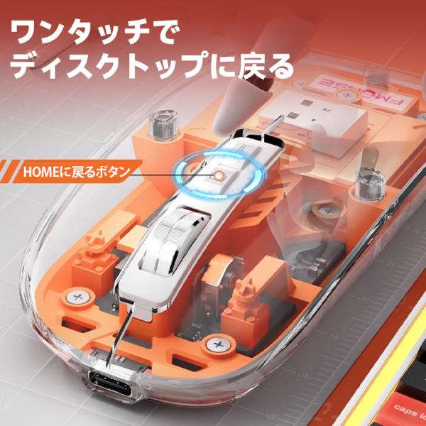 ★大変おしゃれな透明Bluetoothマウス、3台接続、電量表示、DPI調整、HOMEボタン等、うれしい機能が満載。