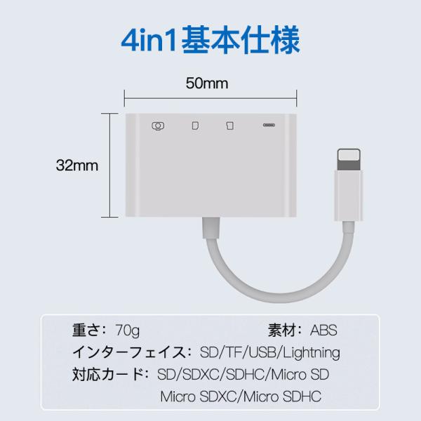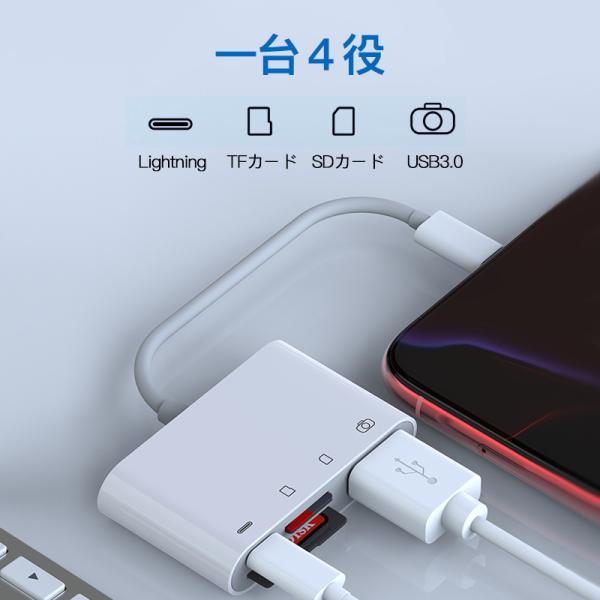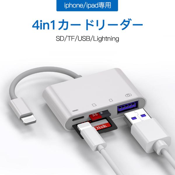 iPhone iPad SD カードリーダー アイフォン Lightning MicroSD tf カード 写真 ビデオ 転送 バックアップ office 読み取り usb 4in1 2in1 ライトニング