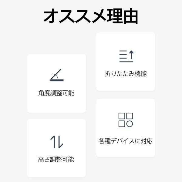 スマホスタンドとして、お好みの高度と角度を調整可能ですので、動画鑑賞等にとても使いやすいです。アルミ合金製で安定感抜群、タブレットスタンドにもご使用できます。