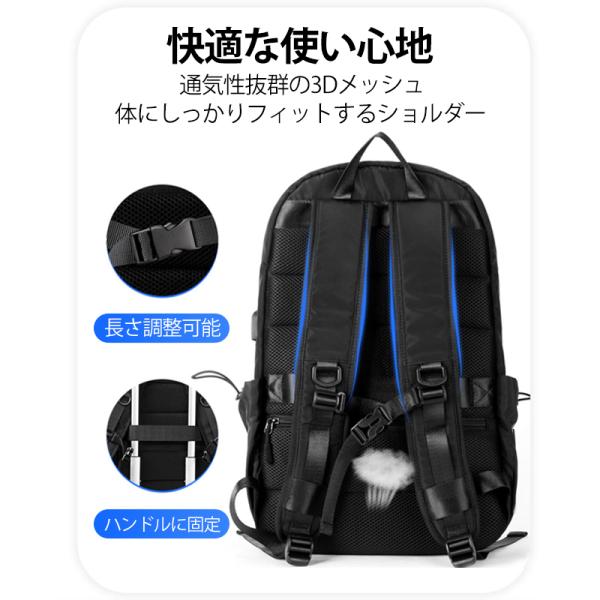 シンプルでおしゃれなリュックサック、撥水、防汚加工、USB充電ポート搭載、ポケット多数装備収納充実。キャリーオンバッグとしてもお使いいただけます。