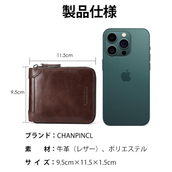 本革 財布 二つ折り メンズ ブランド 革 レザー 牛革 サイフ 小銭入れ 本皮 コンパクト 薄い 軽い ファスナー 紳士用 男性 大容量 高級 ウォレット