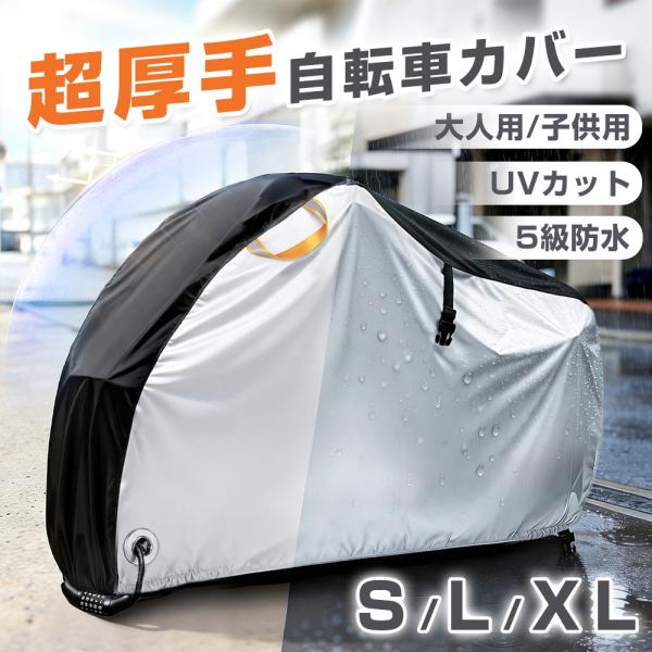 自転車カバー 超厚手 300D IP45防水 UVカット 屋外保管用 防塵 防風 防犯ロック穴付き 収納袋付き 強風対策バックル 裾ゴム 長持ち 鳥のフン対策 汚れ防止