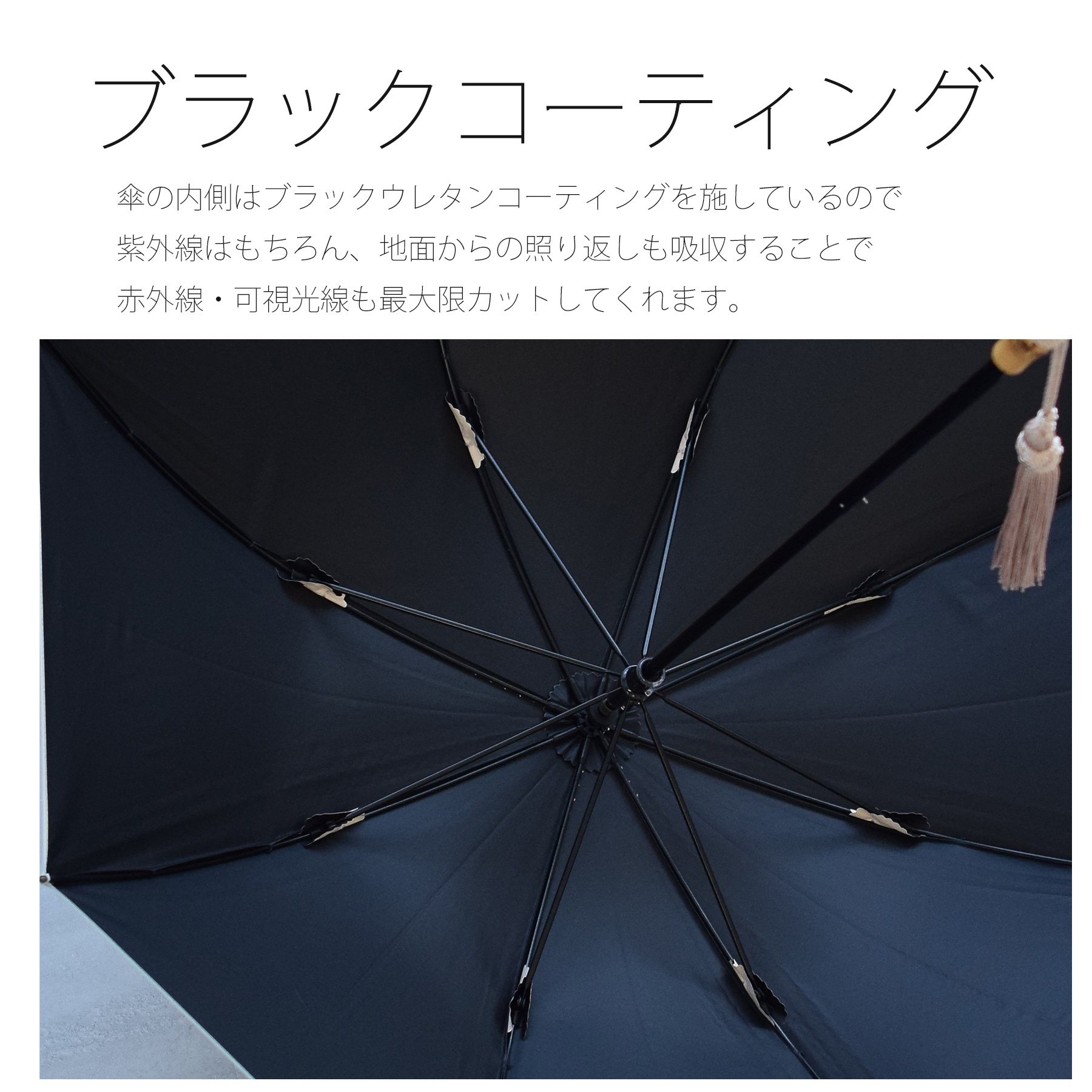 ・傘の内側はブラックコーティングで照り返しを吸収