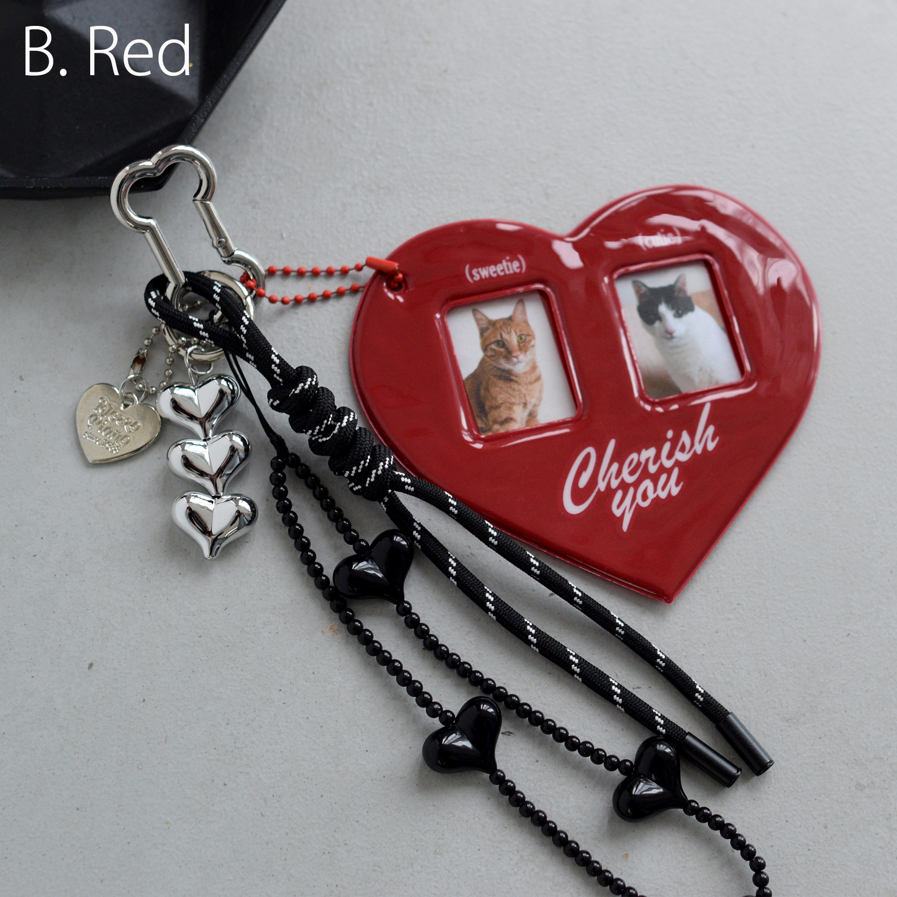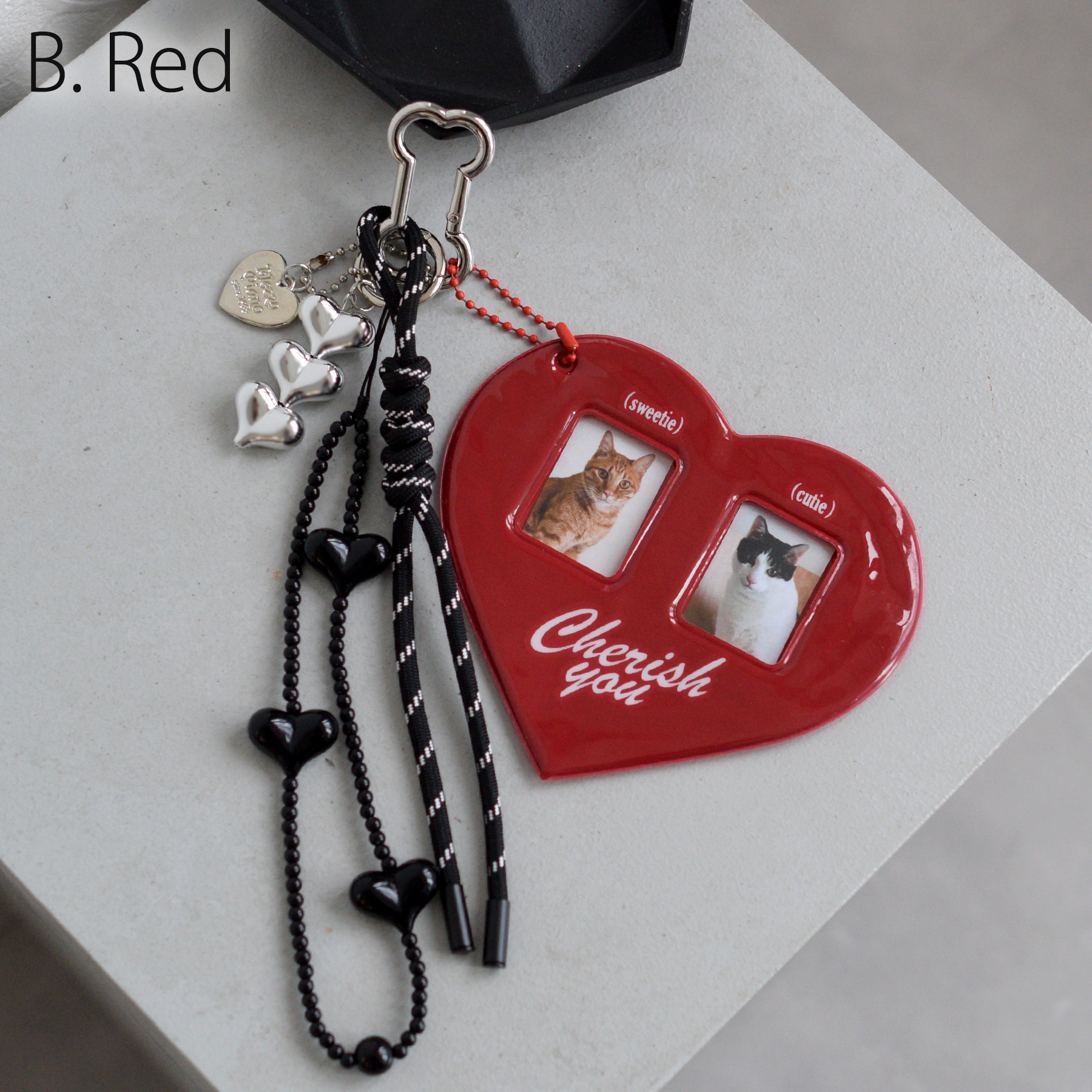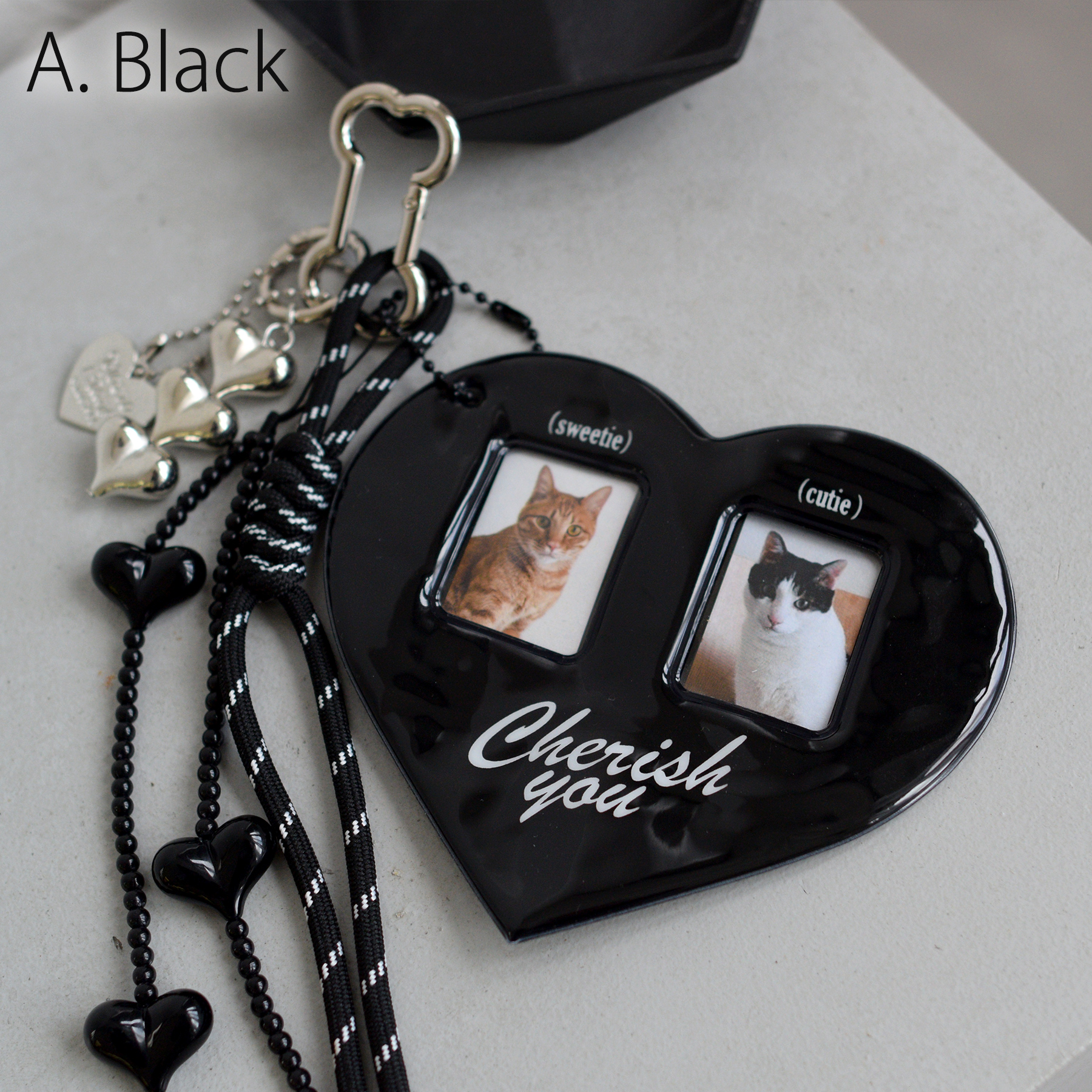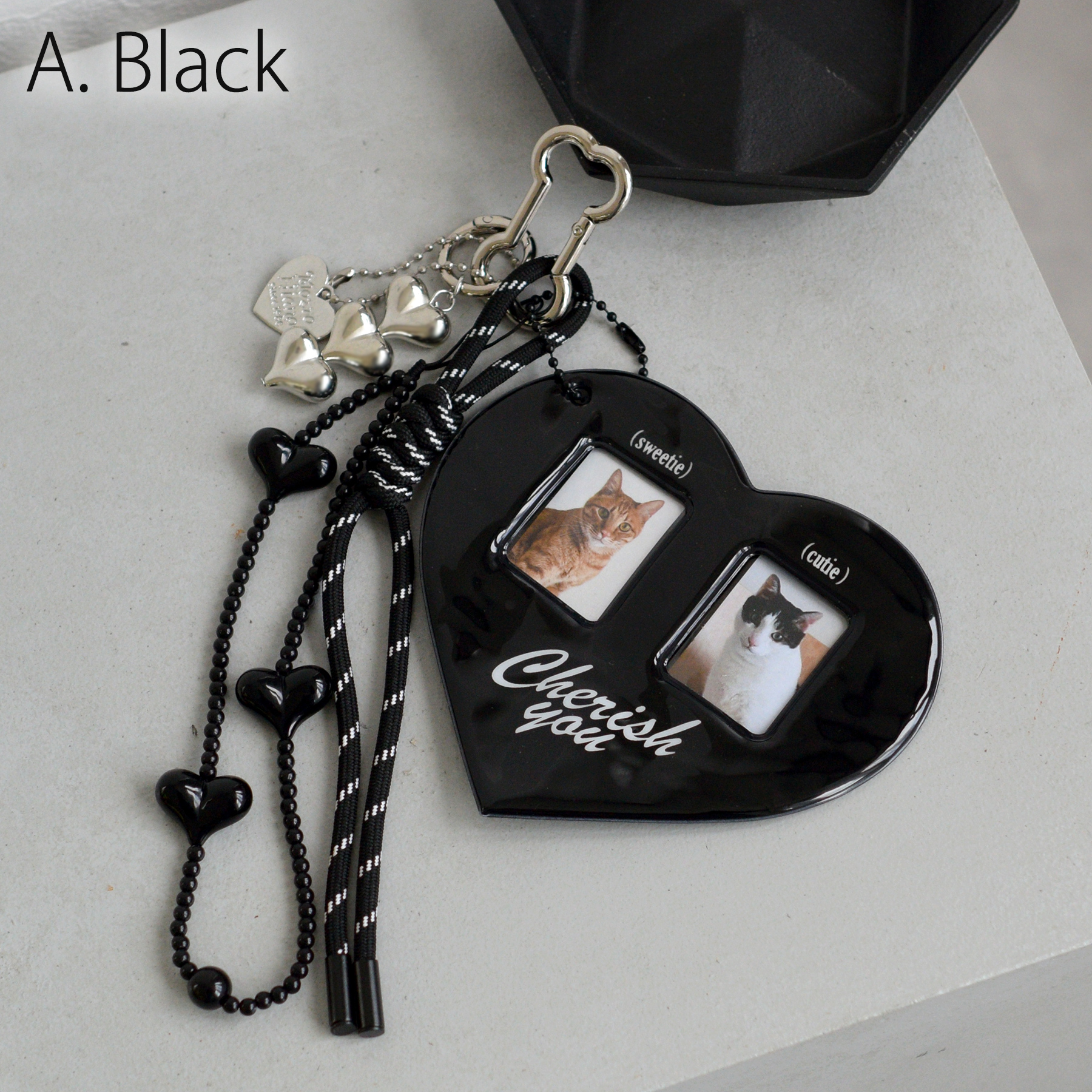 キーホルダー おしゃれ チャーム バッグチャーム ハート 好きな写真を入れてカスタマイズ 推し活 ブラック 黒 レッド 赤 メンカラ 証明写真 ジャラ付け