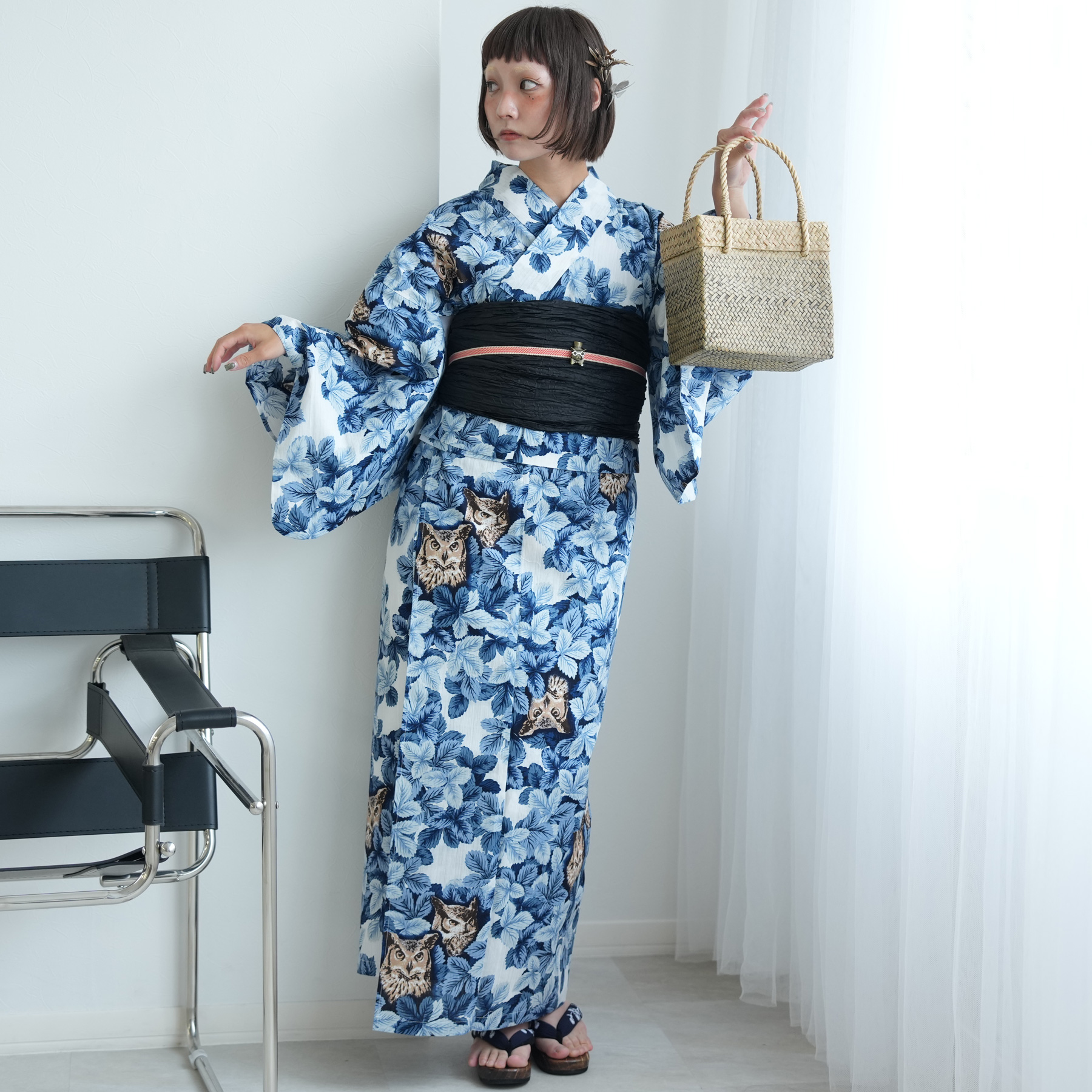 浴衣 レディース セット ニコアンティーク セパレート二部式 3点セット(ゆかた上下・帯・下駄) 梟の森 宵 フリーサイズ