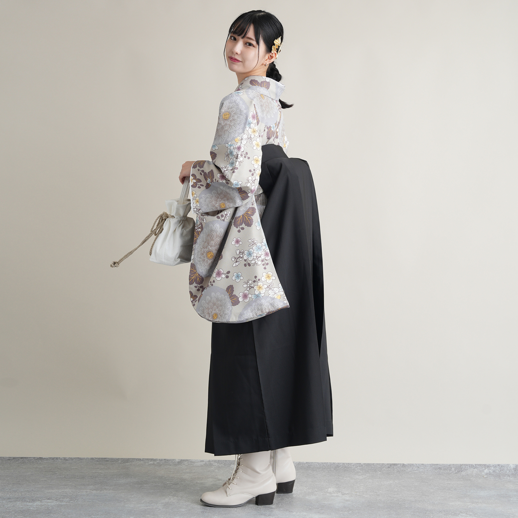 袴 中古 販売 卒業式 着物と袴の2点セット リサイクル着物セット 二尺 ひよこ商店 袴91cm 袴セット 大学生 重ね衿縫い付済 グレー 菊 レトロ 販売 購入
