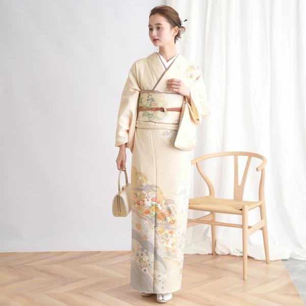 訪問着 レンタル おしゃれ 20点 フルセット 正絹 古典 レトロ 花 ベージュ 菊 萩 梅 フォーマル 入学式 入園式 卒業式 卒園式 ※2026年4月予約空きなし