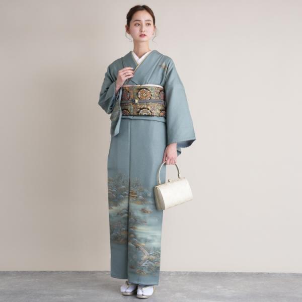 付け下げ レンタル 20点セット 古典柄 レトロ 附下 レンタル 花 青系 青緑 くすみ 茶屋辻 フォーマル 入学式 卒業式 つけさげ ※2026年3月〜4月予約空きなし