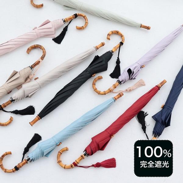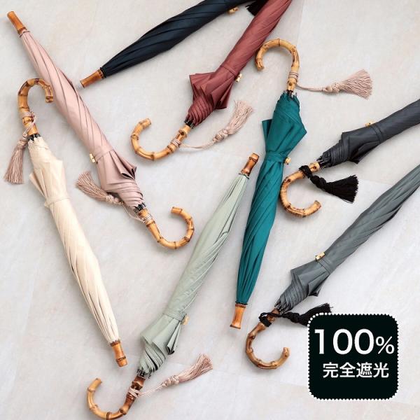 日傘 完全遮光 長傘 小さめ 軽量 晴雨兼用 スライドショート 親骨47cm バンブー 竹 一級遮光 無地 伸縮軸 母の日 紫外線対策 タッセル utatane